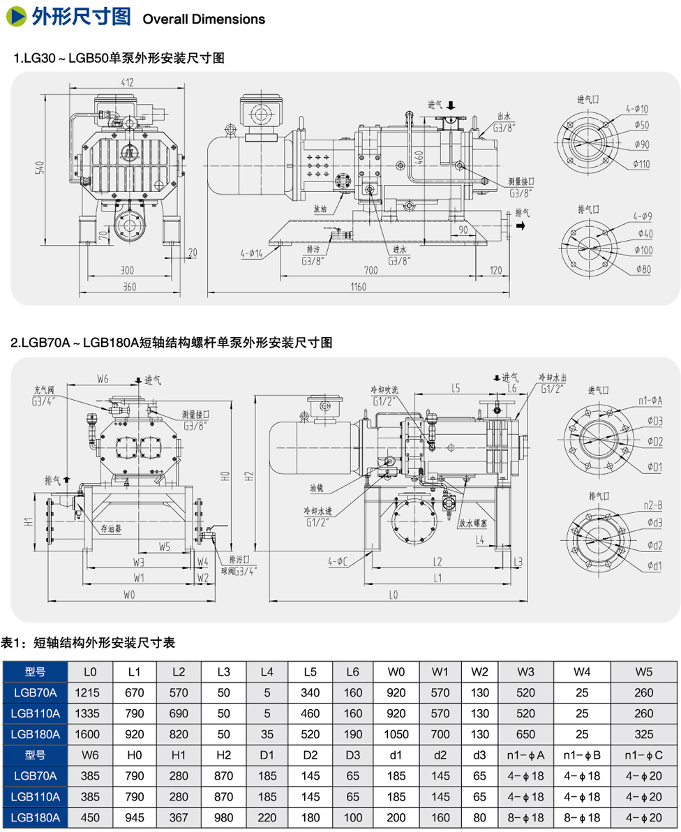 LG/LGB干式螺桿真空泵系列 / LGB110短軸結(jié)構