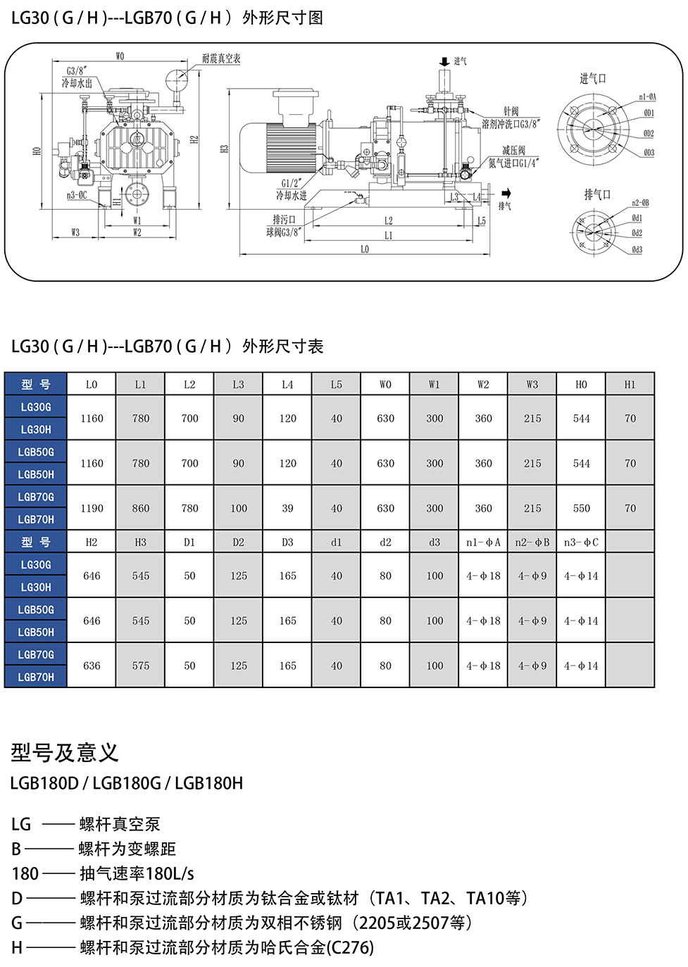 耐腐蝕螺桿真空泵 / LGB70(D/G/H)-LGB180(D/G/H),LG30(G/H)-LGB70(G/H)